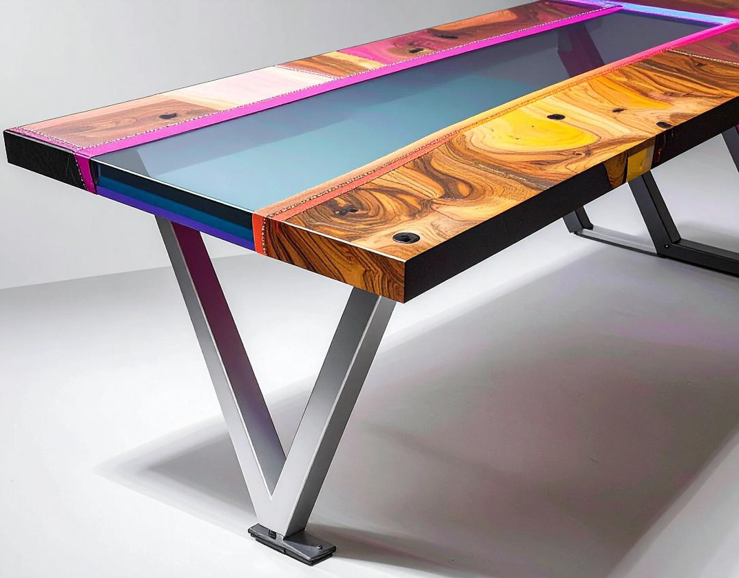 Wood n Leather n Glass Table